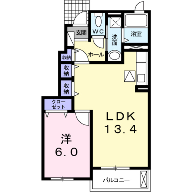 土浦市小松の1LDK 収納4カ所付き