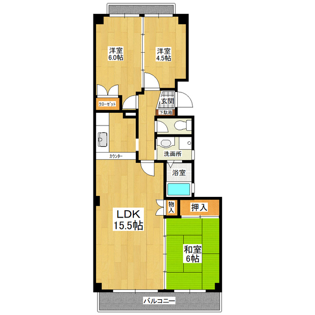 敷金・ 礼金 | 1.5ヶ月 / 0ヶ月 | 間取り | 3LDK |