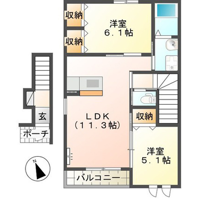 敷金・ 礼金 | 1.0ヶ月 / 0ヶ月 | 間取り | 2LDK |