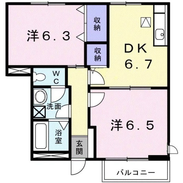 オール角部屋 南向き・2DK