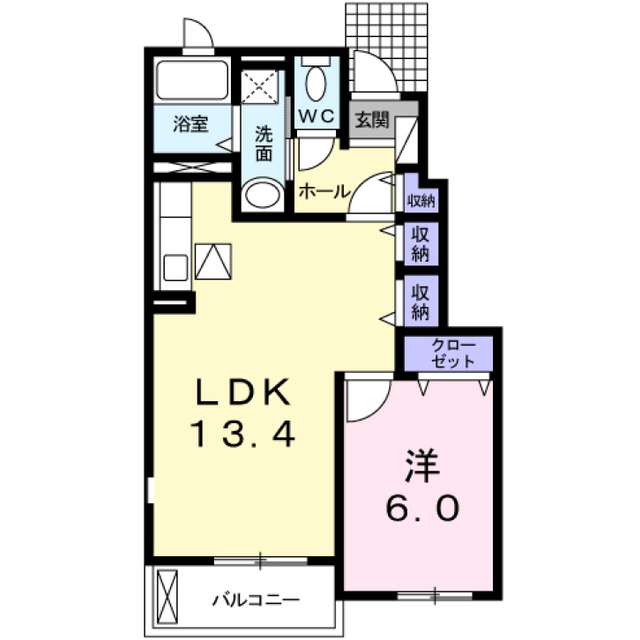 インターネット無料 1階角部屋 収納豊富な1LDK