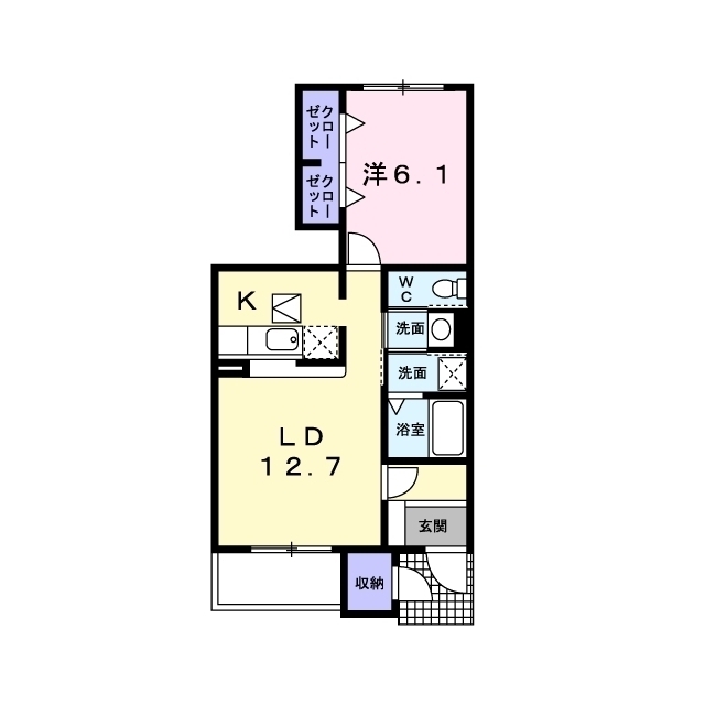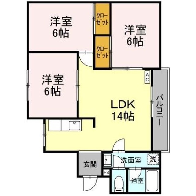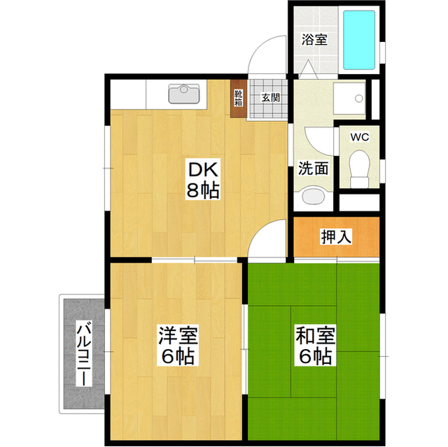 インターネット無料 オール洋室の2LDK 開口部南側が駐車場で日当たり良し