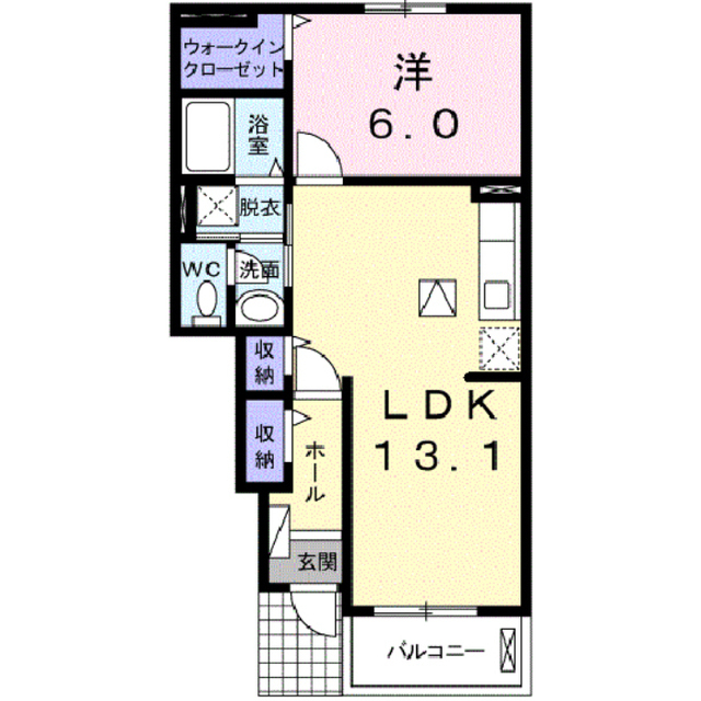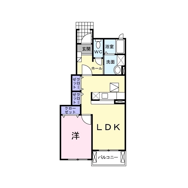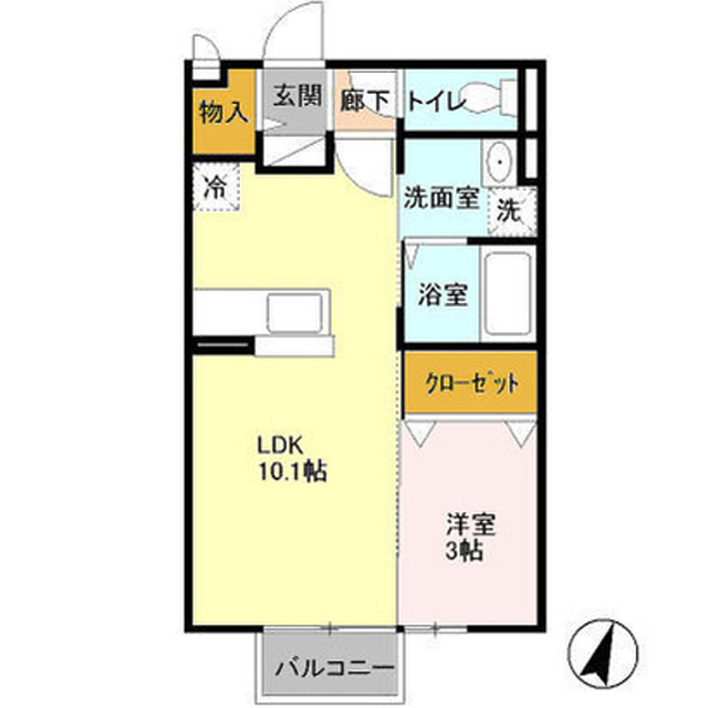 インターネット無料 リビングと洋室をつないでワンルーム風にも利用できる間取