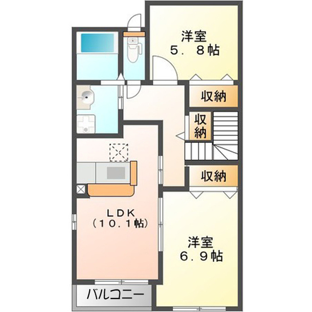カウンターキッチンタイプの2LDK