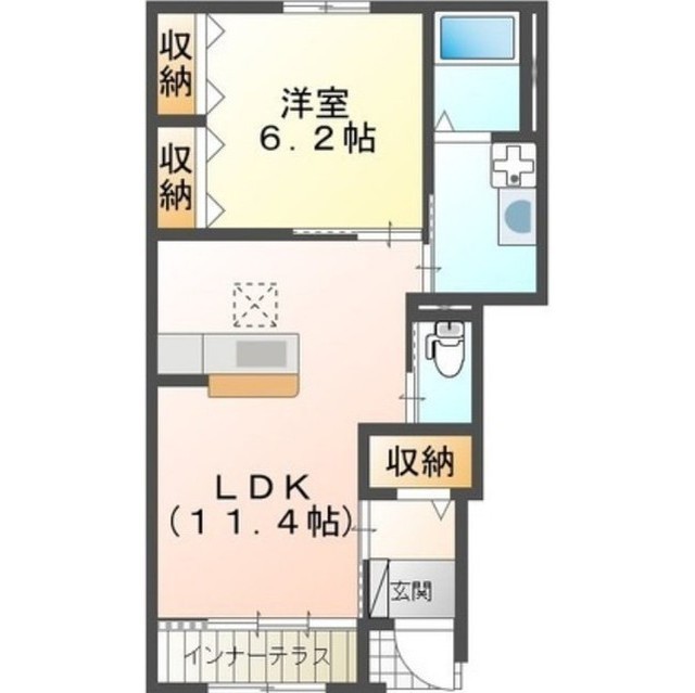新築1LDKの賃貸アパート カウンターキッチンです